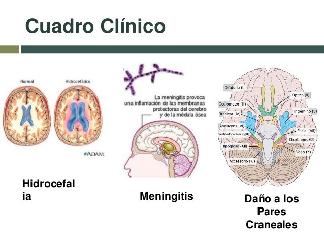 El 65% de los casos ya diagnosticados cursan con crisis convulsivas, sin embargo, el padecimiento tiene una presentación pleomorfica que va desde cefalea crónica hasta Hidrocefalia por Aracnoiditis Meningea, frecuentemente mortal para el enfermo.